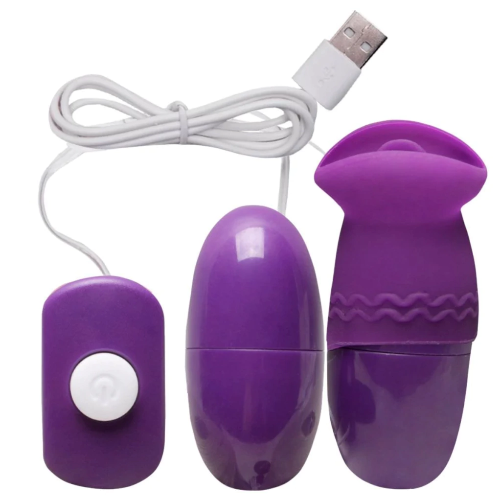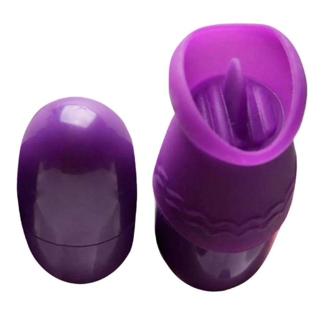 Cápsula Vibrador com duplo estímulo, uma das cápsulas tem vibro e a outra possui uma língua com movimento. Produto funciona diretamente na tomada via USB, podendo ligar no computador direto sem bateria, não é produto recarregável.