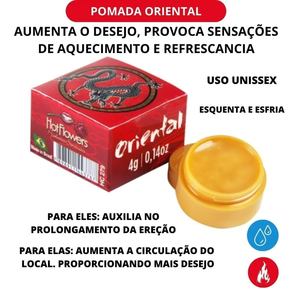 Para a mulher - Aumenta a circulação sanguinea tornando-o mais sensível ao toque, excita e aquece.